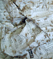 ▲幼令のコオロギ。通信販売で購入している。袋の中に軽くくしゃくしゃにした新聞紙と一緒に入ってくる。